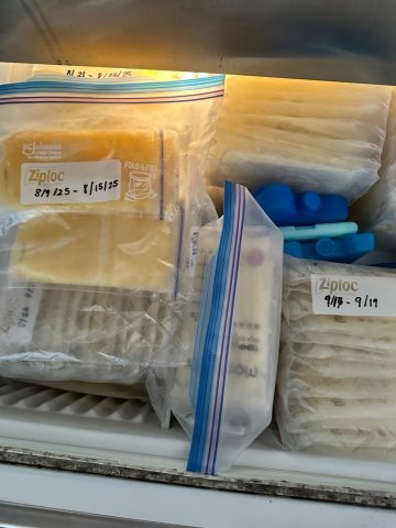 I have several bricks of breastmilk from my 6 week old. The bricks of frozen milk start in the middle of August. All bags range from 2 oz - 4.5 oz. I'm a healthy mom, alcohol and smoke free. Medications used are ones that are safe for breastmilk.