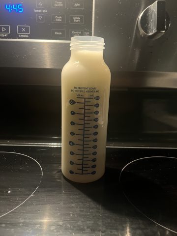 Milk is stored in the fridge for 24 hours and packaged in breastmilk storage bags (4oz per bag) to be frozen flat.
