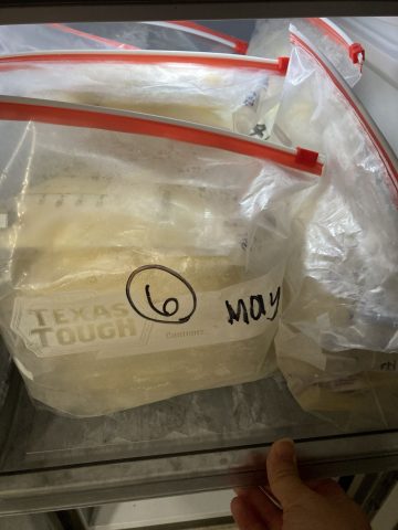 Healthy mom producing an average of 20oz per day. I have about +400oz in the freezer that can be bought in bulk locally or shipped at buyer's cost. My baby has CMPA (cow's milk protein allergy) and I need to sell milk produced from May through September as these were the months I was consuming dairy. Each bag contains 500ml or approximately 5oz.