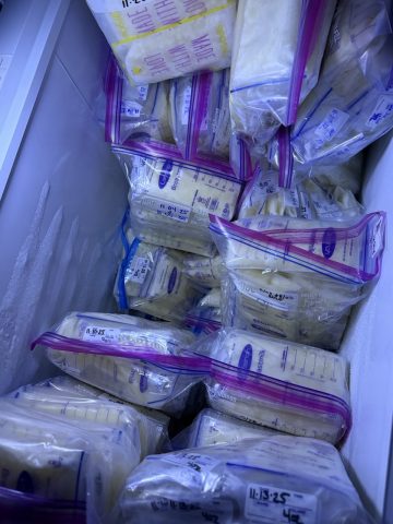 Refrigerator freezer and deep freezer are starting to overflow. I have no room left and make way more than baby can drink. Baby is growing like crazy, has gone from 6lbs to 19lbs in 5 months so milk is very high in only the best fats!